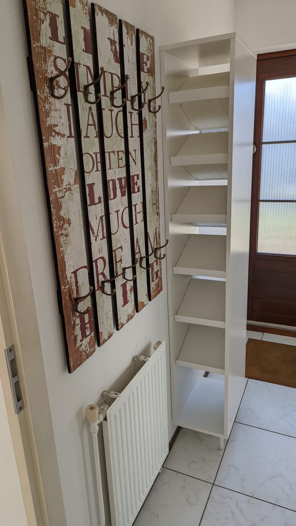 Im Innenbereich befindet sich einer kleiner Flur mit Garderobe und Schuhregal. Abgehend vom Flur befindet sich ein schönes Schlafzimmer mit einem gemütlichen Doppelbett und Kleiderschrank.