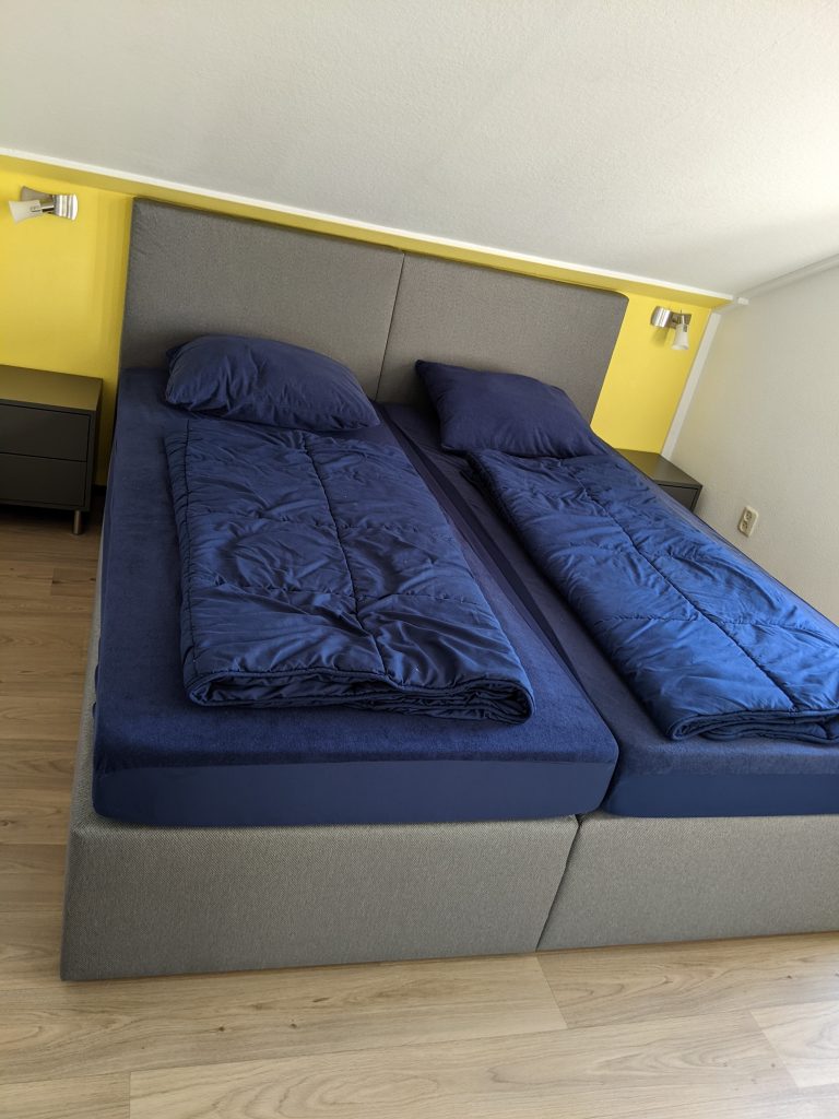 Hier gibt es zwei identische Schlafzimmer mit jeweils zwei Einzelbetten, Nachttischen und Kleiderschrank. Zudem steht ein Kinder-Reisebett zur Verfügung.